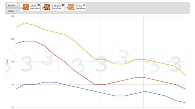 Se osserviamo i differenziali di prezzo, possiamo vedere che il mais si attesta a € 187 / t (€ 5 in più rispetto a maggio) per quello disponibile nel porto di Tarragona (Spagna), mentre il frumento è intorno a € 202 / t ( 5 euro in più rispetto al mese scorso e 15 € / t di differenziale con mais) e l'orzo arrivo al mercato di Lleida a circa 182 € / t (3 € in più, rispetto a maggio, e 8 € sotto il mais arrivo di Lleida).