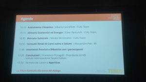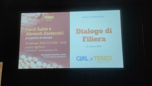 Teseo, marchio di CLAL, ha organizzato un incontro con tutti gli attori della catena produttiva di carni suine in Italia. Oltre 114 partecipanti, pochi gli allevatori, hanno apprezzato i vari temi introdotti con tanto di dati: Clima, Alimenti zootecnici, Energia, Mercato suinicolo, Consumi Retail il tutto conclusosi con l'intervento di Francesco Pizzagalli...