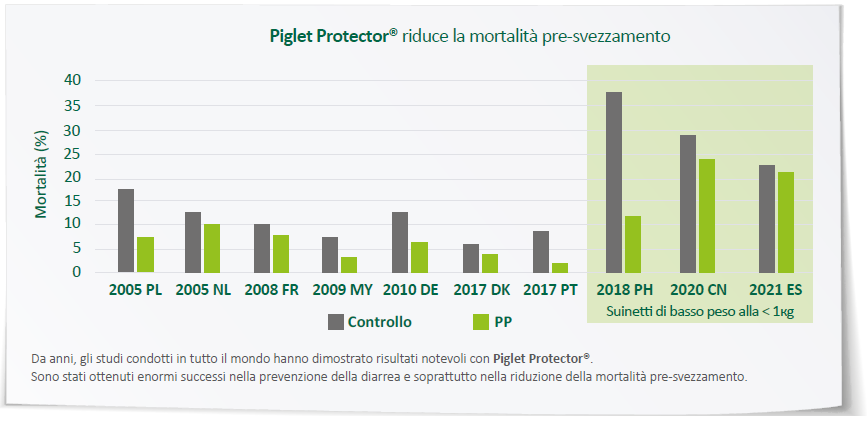 I suinetti nascono senza alcuna protezione immunitaria e con poco tessuto adiposo. Pertanto, un’assunzione immediata e sufficiente di colostro dopo la nascita è fondamentale per fornire ai suinetti sia anticorpi materni sia energia. Le nidiate numerose sono associate a una riduzione del peso medio alla nascita e a una maggiore variabilità del peso vivo tra i suinetti. Allo stesso tempo, la quantità di colostro ingerita per suinetto diminuisce, conducendo a una grave carenza di nutrienti essenziali.