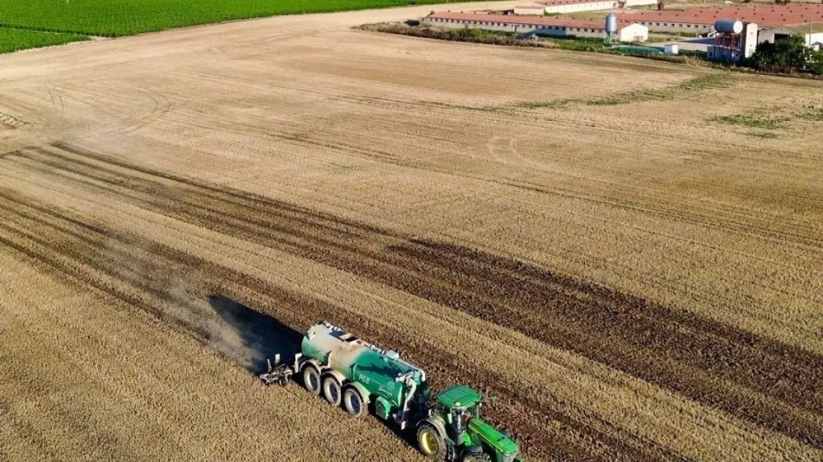 El purín generado en la granja se envía a un sistema de separación sólido – líquido y de ahí se bombea a una balsa de unos 2000 m2 donde se almacena hasta su vaciado para la aplicación en el campo como fertilizante para la producción de cereal principalmente.