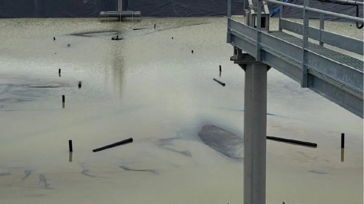 𝐑𝐚𝐦𝐩𝐚 𝐝𝐞 𝐬𝐞𝐩𝐚𝐫𝐚𝐜𝐢ó𝐧 𝐩𝐚𝐫𝐚 𝐥𝐚𝐬 𝐊𝐨𝐦𝐩𝐚𝐜𝐤. Así se ve cuando trabaja.El purín baja desde la parte superior mientras el sistema separa sólidos y residuos antes del tratamiento.