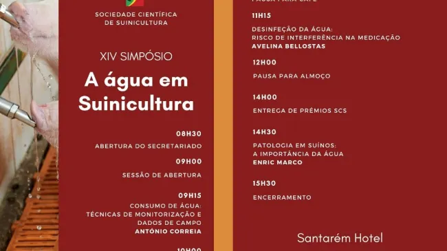 Com o tema "A água em Suinicultura", o evento contará com oradores ligados à suinicultura e à qualidade da água.