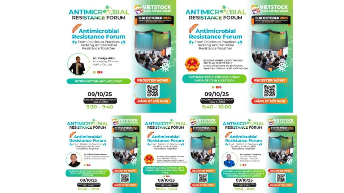 The Antibiotic Resistance (AMR) Forum will take place on October 9, 2025, at Vietstock 2025, bringing together experts and speakers from leading enterprises in the livestock sector. The forum will focus on practical and pressing issues, including