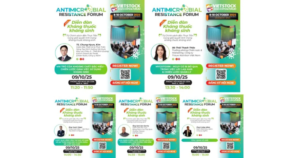 Diễn đàn Kháng Thuốc Kháng Sinh tại Vietstock 2025: Cập Nhật Xu Hướng & Giải Pháp Toàn DiệnDiễn đàn Kháng Thuốc Kháng Sinh lần đầu tiên được tổ chức tại Vietstock 2025, sẽ mang đến những chia sẻ chuyên sâu từ các chuyên gia đầu ngành, tập trung vào các vấn đề cấp bách nhất trong quản lý và giảm thiểu tình trạng kháng thuốc kháng sinh. Đây là sự kiện quan trọng để cộng đồng chăn nuôi cập nhật tri thức và giải pháp bền vững.